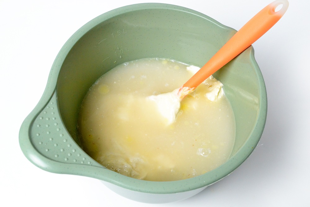 Совет: замороженный бульон следует достать заранее, можно разморозить при комнатной температуре (часа 3-4 достаточно для 0,5 л).