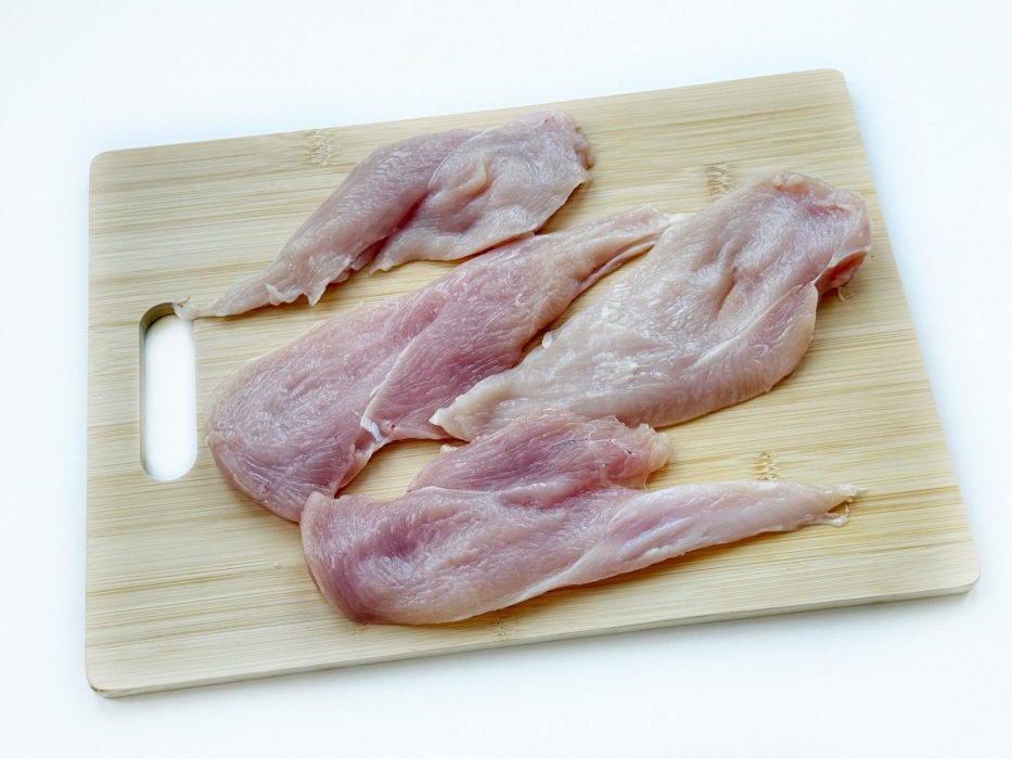 Для рецепта выбирать охлажденное куриное филе нежно-розового цвета, без серых пятен и лишней жидкости в упаковке. Обращать внимание на плотность, мясо должно быть упругим, не рыхлым. Слишком крупные грудки лучше разрезать, так филе приготовится равномерно.