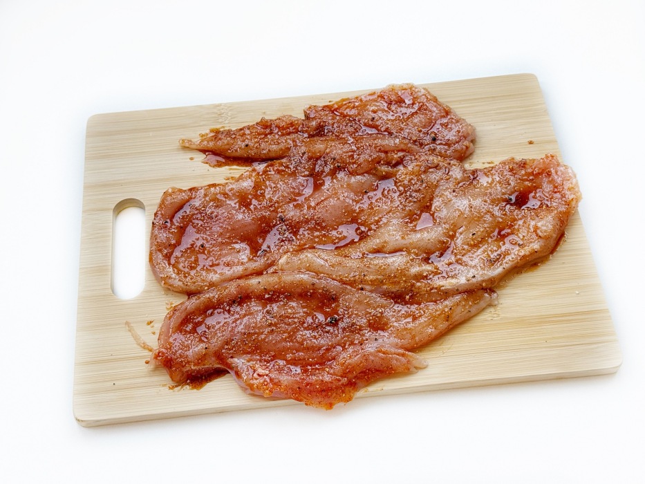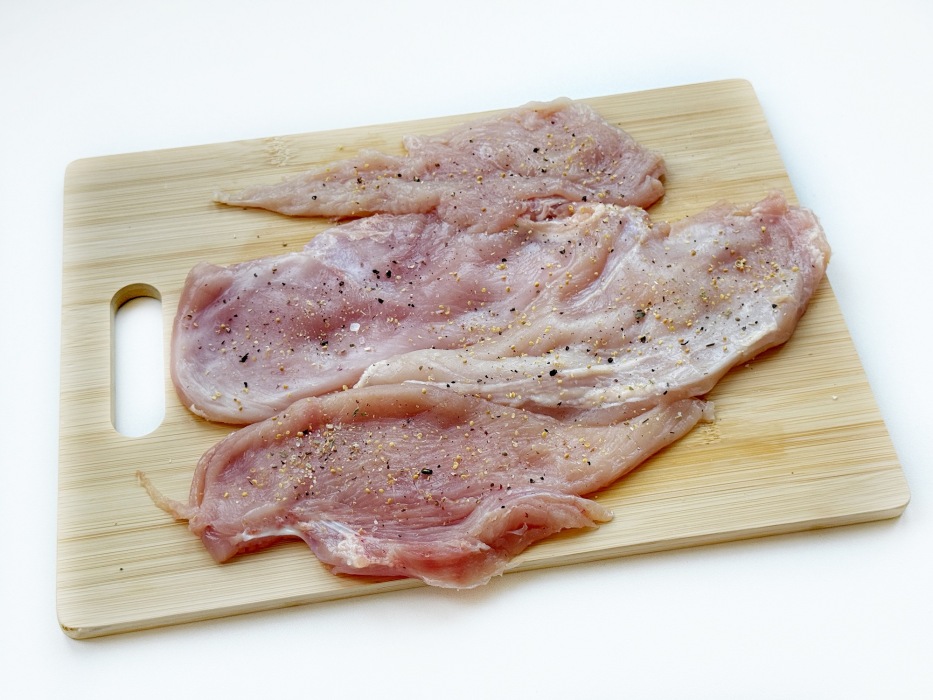 - Не берите слишком толстое филе. Если грудка крупная, лучше разрезать ее вдоль на 2 более тонких пласта и слегка отбить. Так она прожарится равномерно и останется сочной.