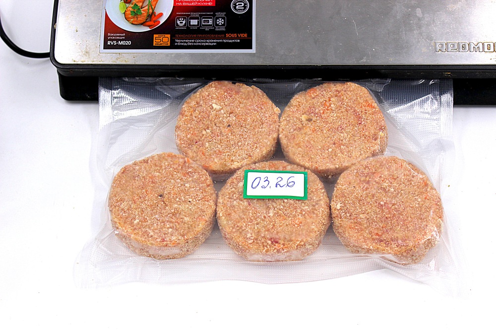 Уже замороженные биточке вакуумировать и проставить дату.