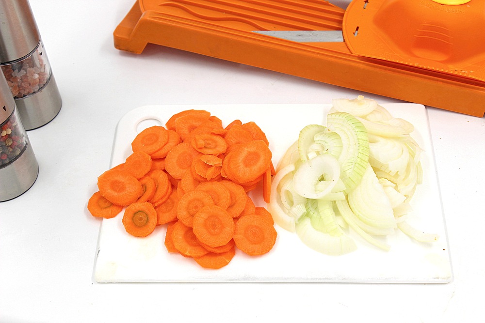 Эти овощи всё равно будут перекручиваться. Просто тонкая нарезка для того, что бы быстрее всё обжарилось и размягчилось.