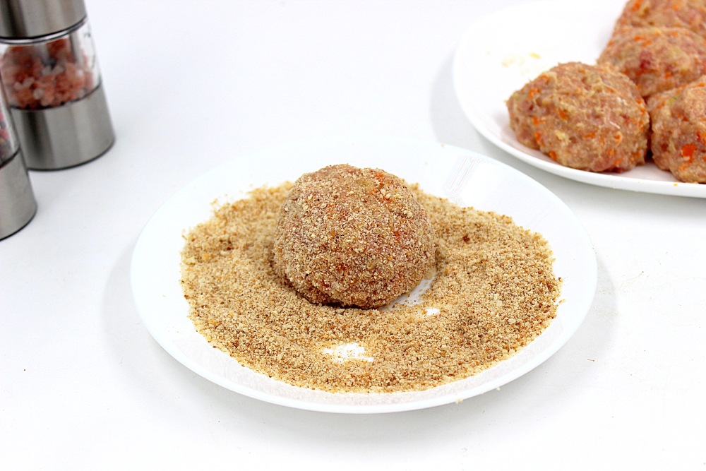Обвалять шарики в сухарях.