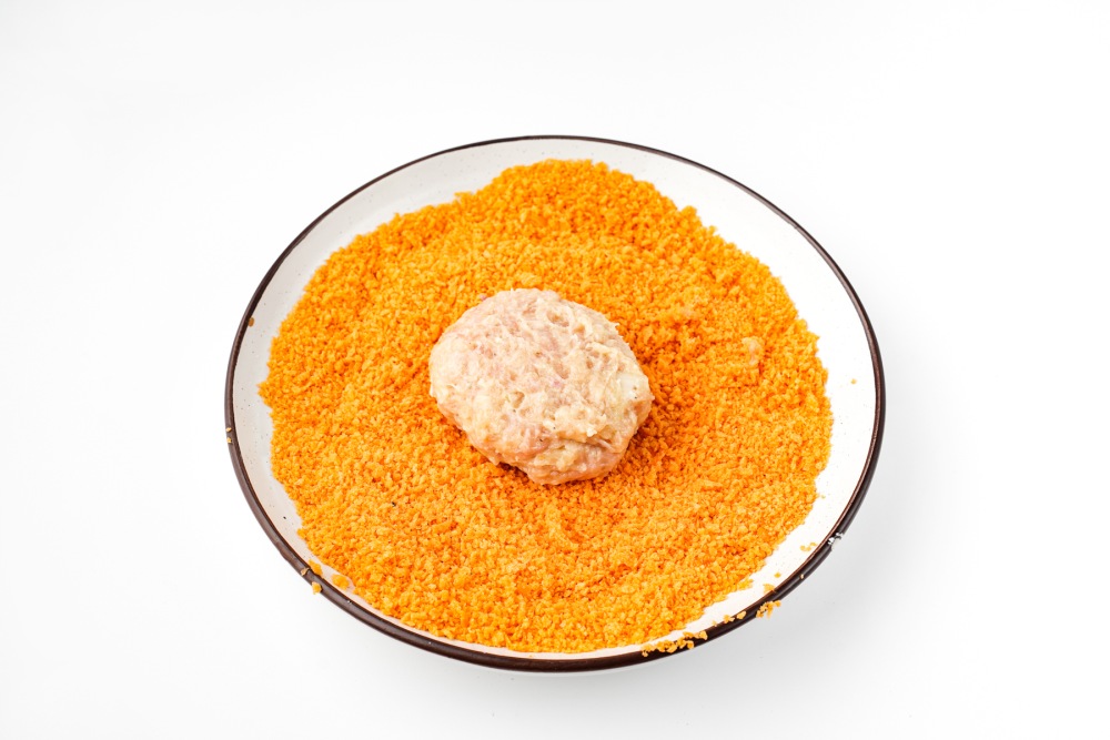 Сформировать котлету нужного размера, обвалять в панировочных сухарях со всех сторон.