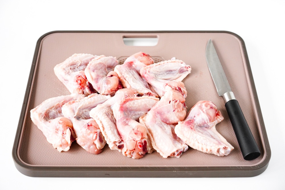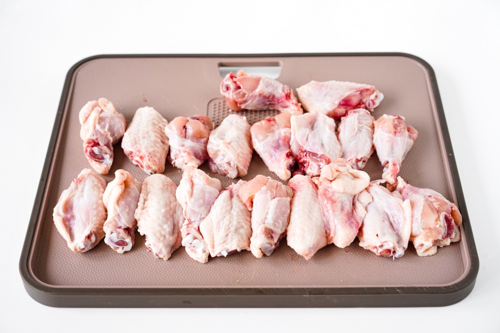Крылышки тщательно промыть под прохладной водой, удалить остатки перьев, обсушить бумажными полотенцами. Крайние фаланги лучше убрать, они маленькие, быстро подгорают и в них почти нет мяса.