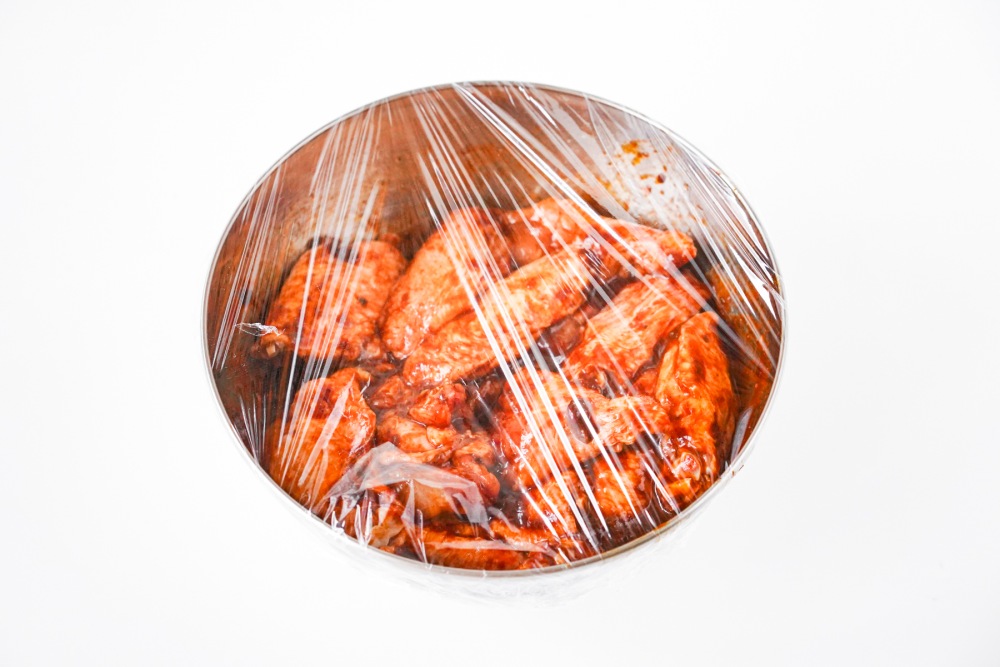 Накрыть миску крышкой или пищевой плёнкой и оставить крылышки мариноваться минимум на 30–60 минут при комнатной температуре. Если позволяет время, убрать миску в холодильник на 2–3 часа - за это время мясо впитает все ароматы, станет более мягким и пикантным.