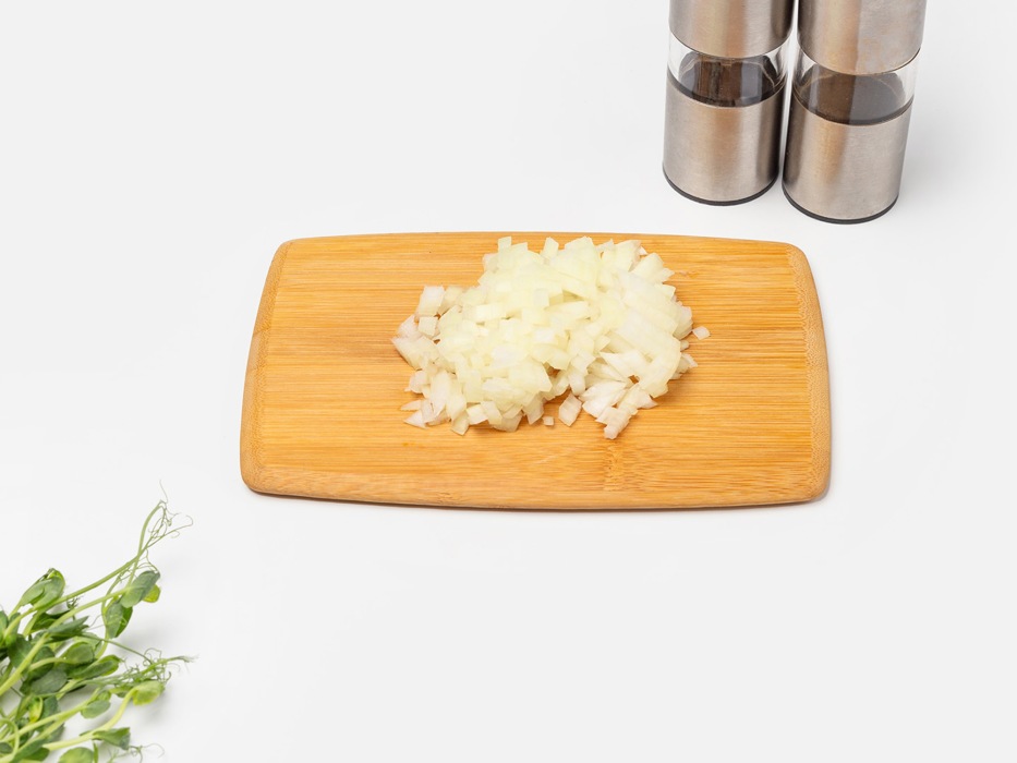 Лук очистить и нарезать на мелкие кусочки.