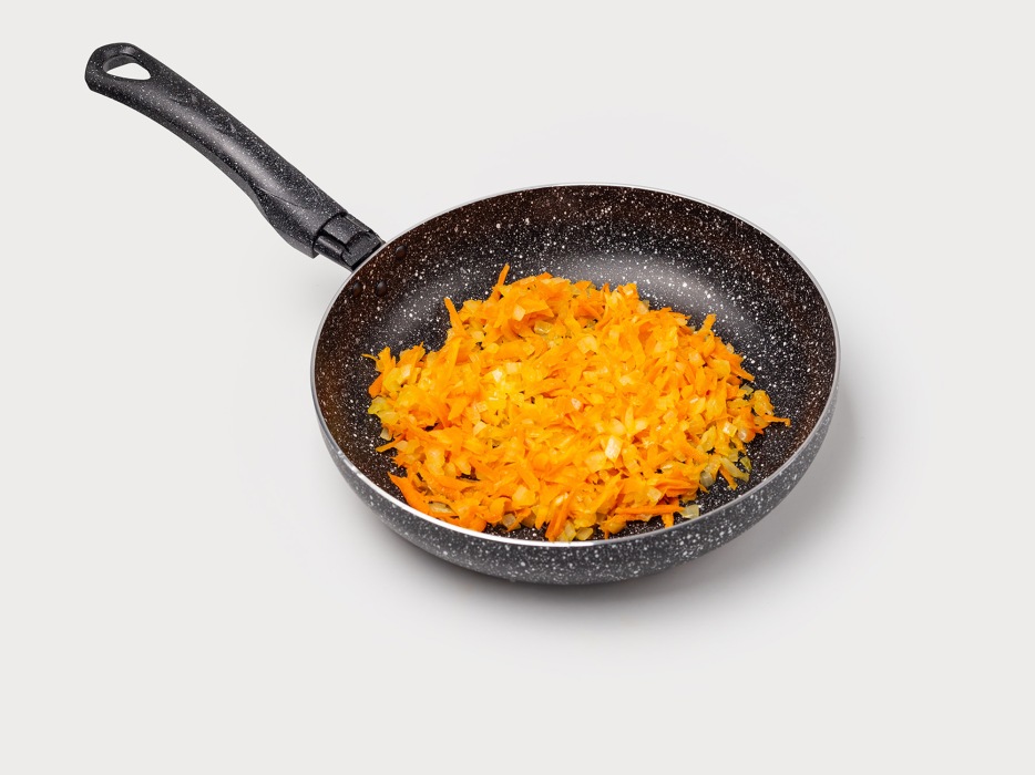 Добавить морковь, обжарить до готовности.