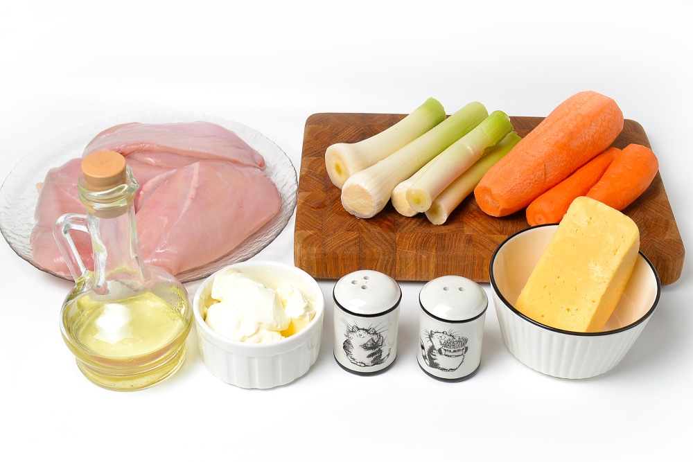 Также присутствует сборная приправа «Для курицы», которую можно убрать из рецепта, ограничившись лишь перцем и солью. Сыр следует брать твердый или полутвердый, который не сильно растекается и создает вкусную корочку. Подойдет и пармезан, и гауда, и простой российский сыр. Главное, чтобы в нем не было заменителей молочных жиров. Они при плавке создают неприятный привкус и становятся еще вреднее.