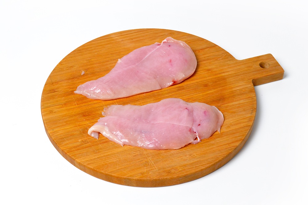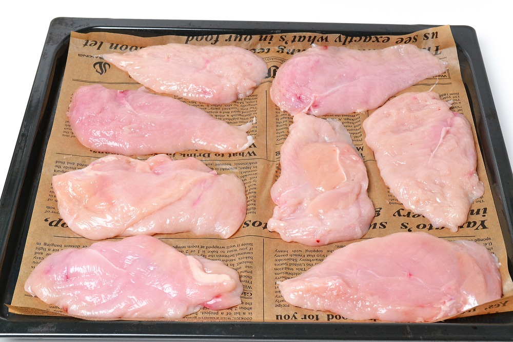 – Малое филе также отбивают и выкладывают сверху самых тонких и небольших отбивных, полученных при разрезании грудок пополам.