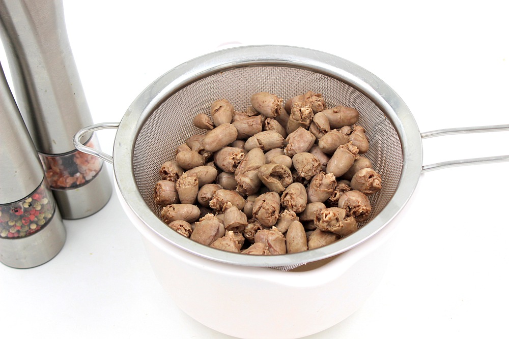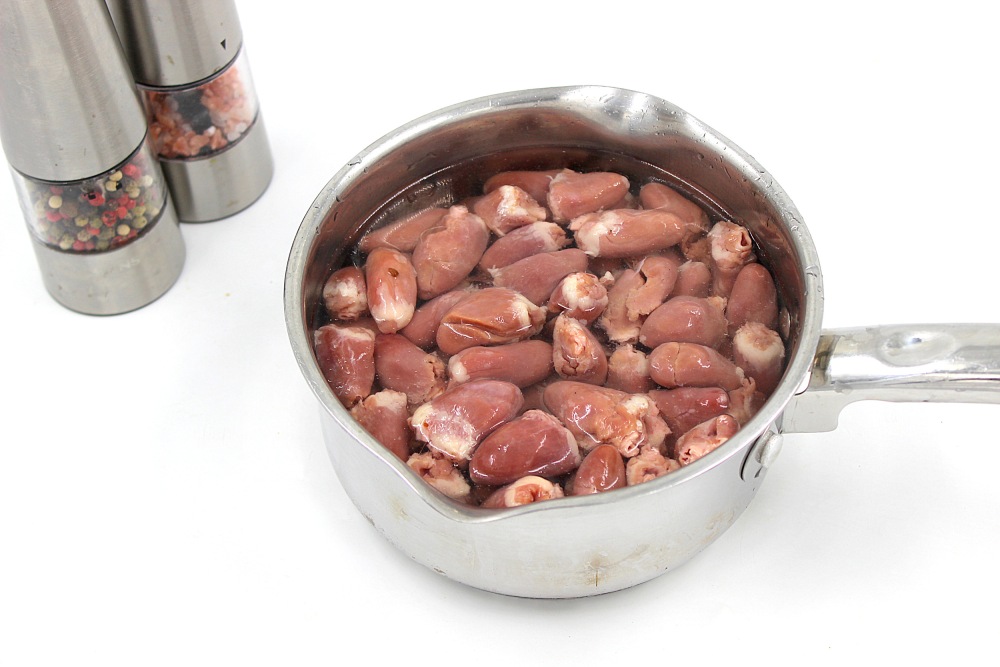Сердечки промыть и поставить вариться, залив небольшим количеством воды.