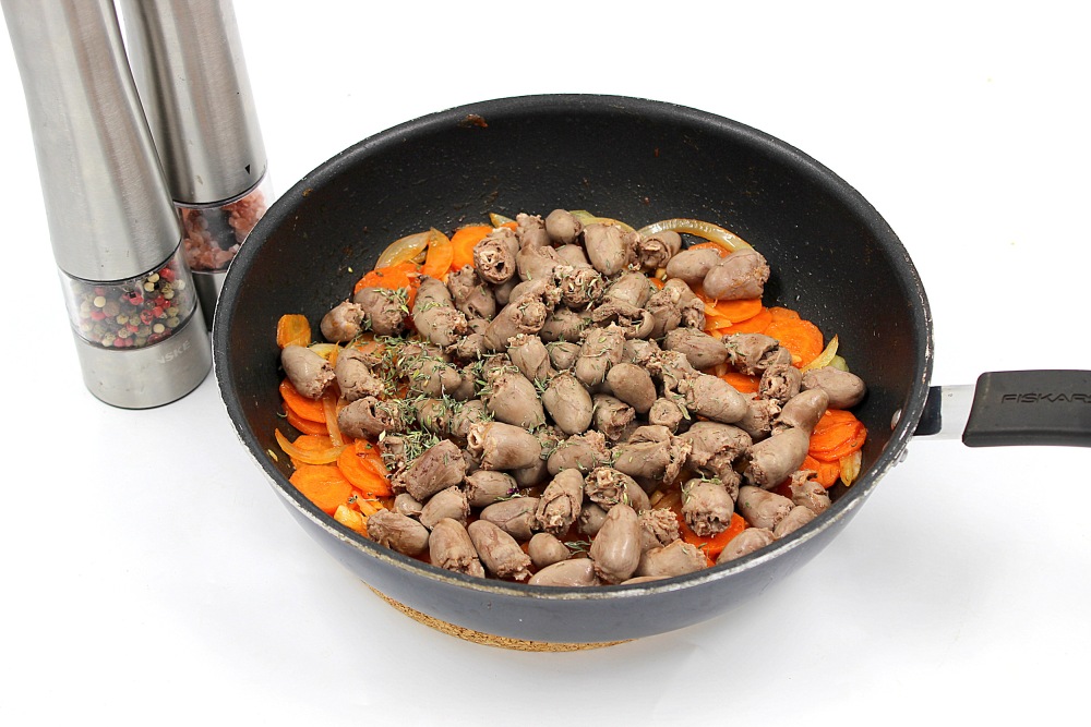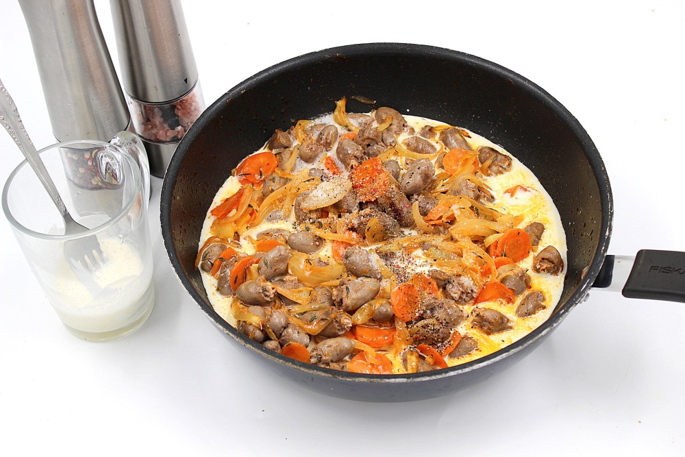 Как изменить или улучшить вкус куриных сердечек с луком и подливкой на сковороде:
