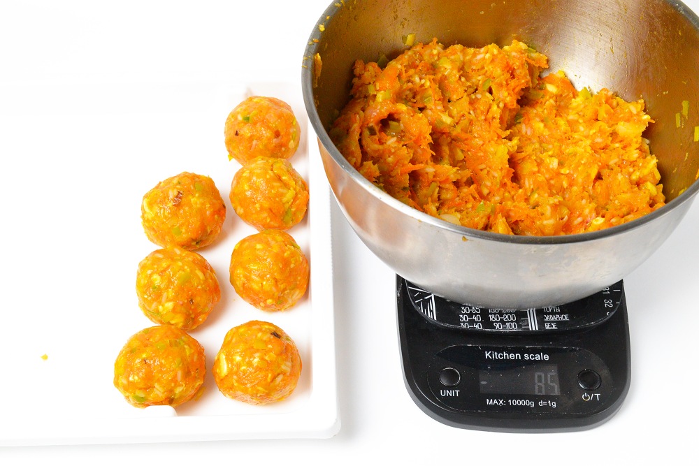 Сформировать тефтели и выложить на лотки для заморозки.