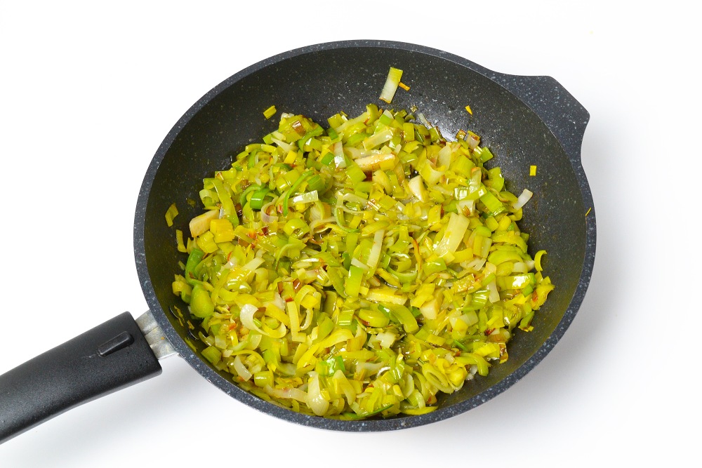 - Лук-порей можно не обжаривать: мелко нарезать и добавить к фаршу или измельчить в блендере.
