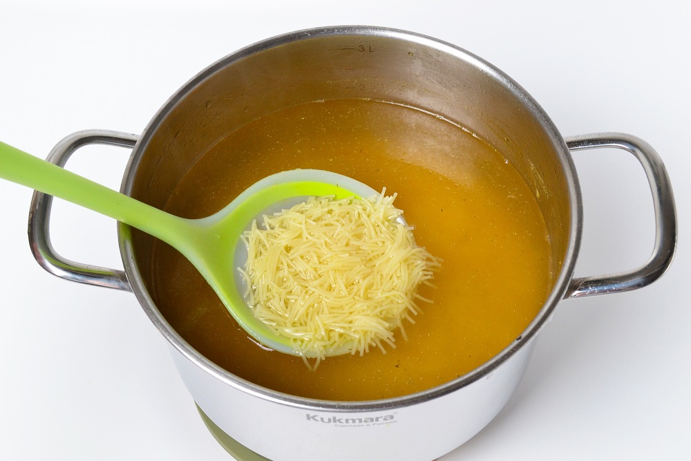 Вермишель лучше брать из твердых сортов пшеницы – она вкуснее и полезнее. Вместо вермишели можно взять звездочки или другие варианты мелких макарон для супа.