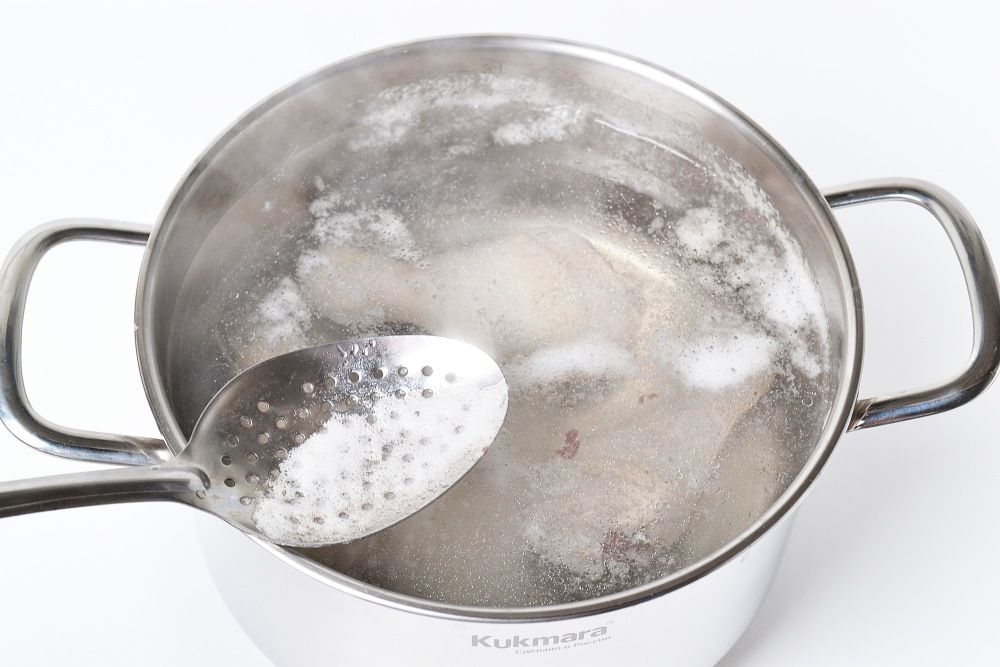 – Пену можно не снимать. Это не грязь, а свернувшийся белок. Однако бульон получится с вкраплением хлопьев и непрозрачный.