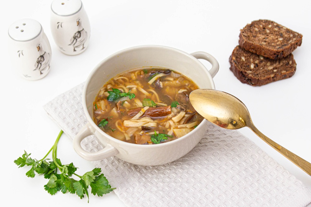 Лапша из сушёных грибов постная — это не просто блюдо, а необычный суп из домашней лапши и ароматных лесных грибов, который можно приготовить даже в пост. Вкус лапши из сушёных грибов — это сочетание аромата, лёгкой сладости от моркови и лука, а также нежной текстуры домашней тонкой лапши. Бульон получается насыщенным, с ярким грибным ароматом, который невозможно спутать ни с чем другим.