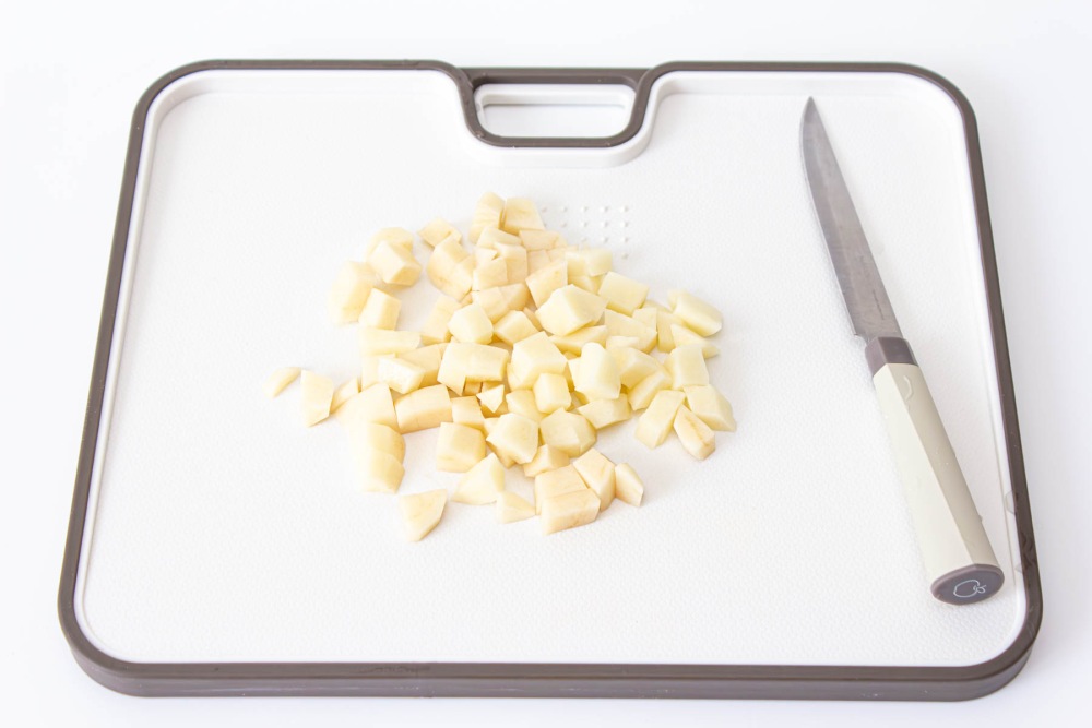 Картофель очистить и нарезать кубиками или соломкой.