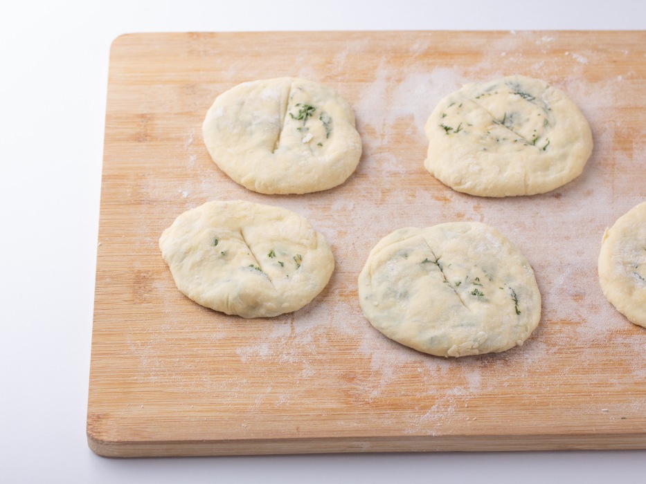 Сделать надрезы в центре каждой лепешки.