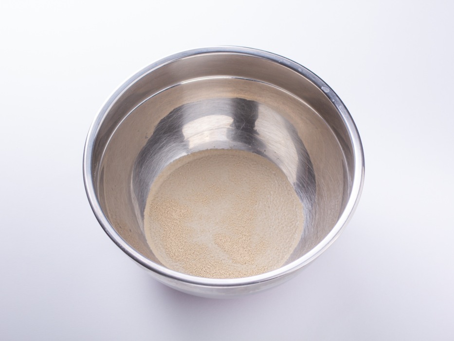 Налить в миску 100 мл воды и добавить дрожжи.