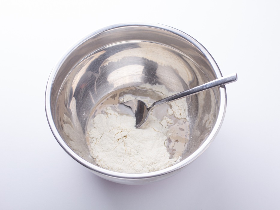 Отмерить нужное количество муки, дрожжей, воды, сахара и растительного масла.