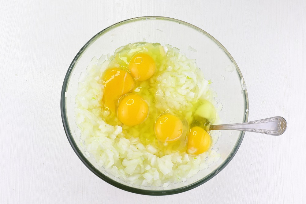 Для создания идеальной основы фарша понадобится пять яиц категории С1 (примерно 250 г без скорлупы) – именно такая пропорция гарантирует сочность и целостность котлет, предотвращая их рассыпание или «расползание» на сковороде. Тщательно перемешать смесь ложкой до полной однородности, добиваясь того, чтобы каждый кусочек лука был покрыт яичным слоем.