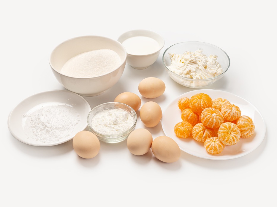 Подготовить все продукты. Мандарины почистить, убрать косточки.