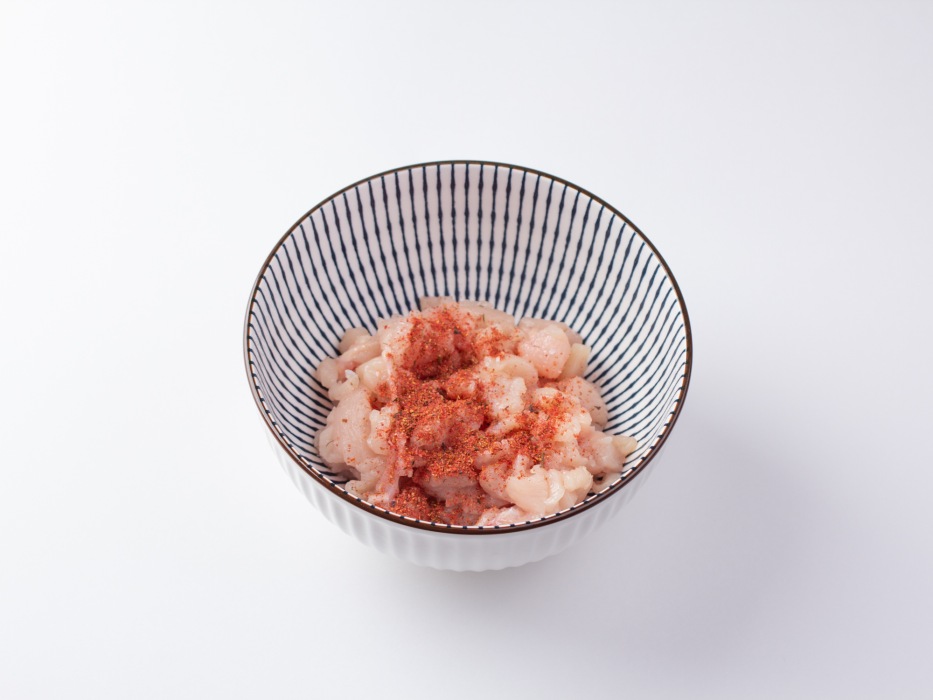 Кусочки куриного филе положить в миску, посолить и добавить специи.