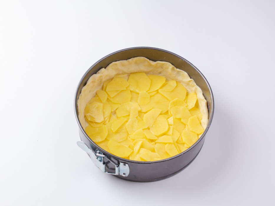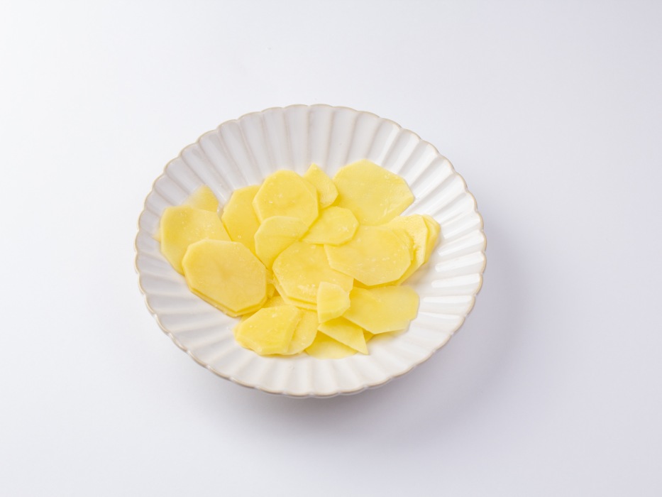 Нарезать картофель тонкими кружочками (1-2 мм).