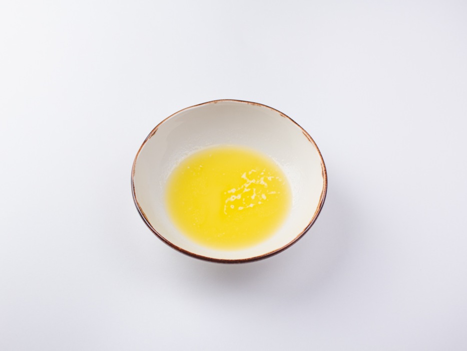 Сливочное масло растопить. Это можно сделать на водяной бане или просто положить его в сковородку и поставить ее на медленный огонь.