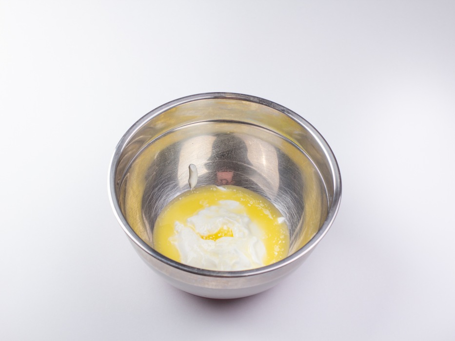 Добавить растопленное масло. Оно должно предварительно остыть.