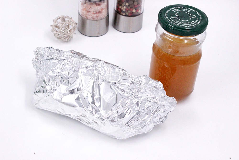 -Если хотите придать пикантности, то перед подогревом верх можно обмазать, например, барбекю соусом или сделать глазурь на основе соевого соуса и мёда.