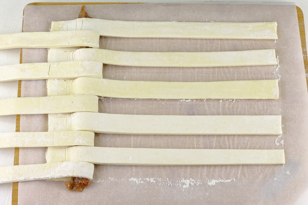 Отогнуть полоски теста через одну.