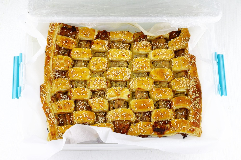 Слоёное тесто заранее достать из морозилки, чтобы оно успело разморозиться.
