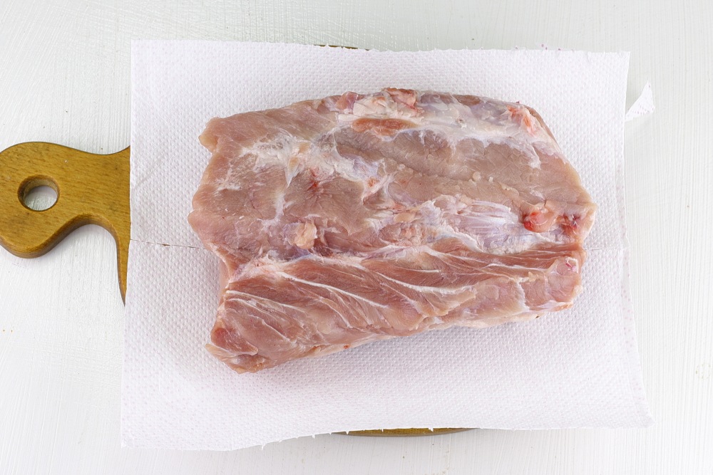 Влажное мясо будет плохо мариноваться, а излишки воды могут повлиять на текстуру и вкус блюда. Для этого взять бумажные полотенца или чистое кухонное полотенце. Аккуратно промокнуть свинину, чтобы избавиться от лишней влаги.