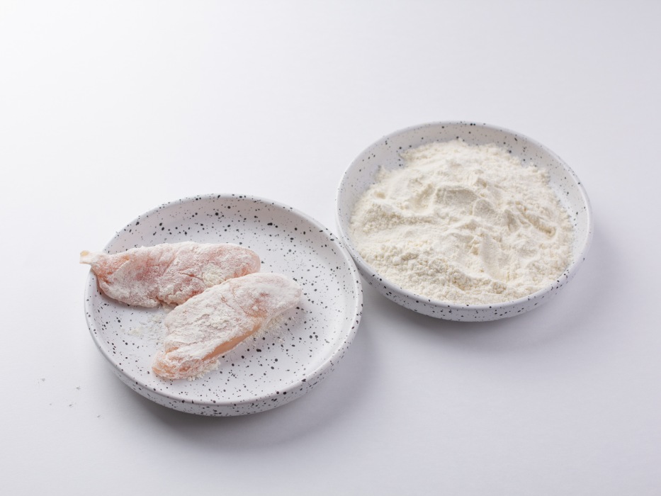 Подготовить все ингредиенты для наггетсов из куриной грудки в домашних условиях на сковороде. Отмерить нужное количество панировочных сухарей и муки.