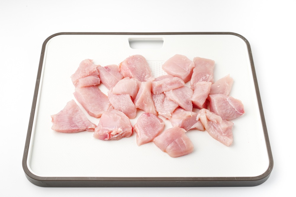 Нарезать филе на небольшие кусочки размером примерно 2–3 см. Стараться делать кусочки одинаковыми по размеру, чтобы они приготовились равномерно и не пересохли.