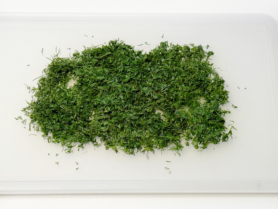 -Укроп обязательно хорошо обсушить после мытья, иначе зеленая «шубка» ляжет неравномерно.