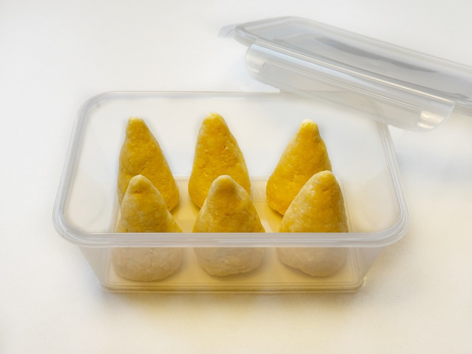 -Если яично-сырная масса кажется мягкой, убрать её в холодильник на 15–20 минут перед формированием.