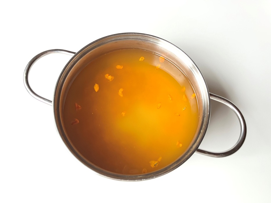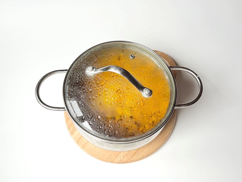 Выключить огонь, накрыть кастрюлю крышкой, оставить облепиховый морс на 15 минут.