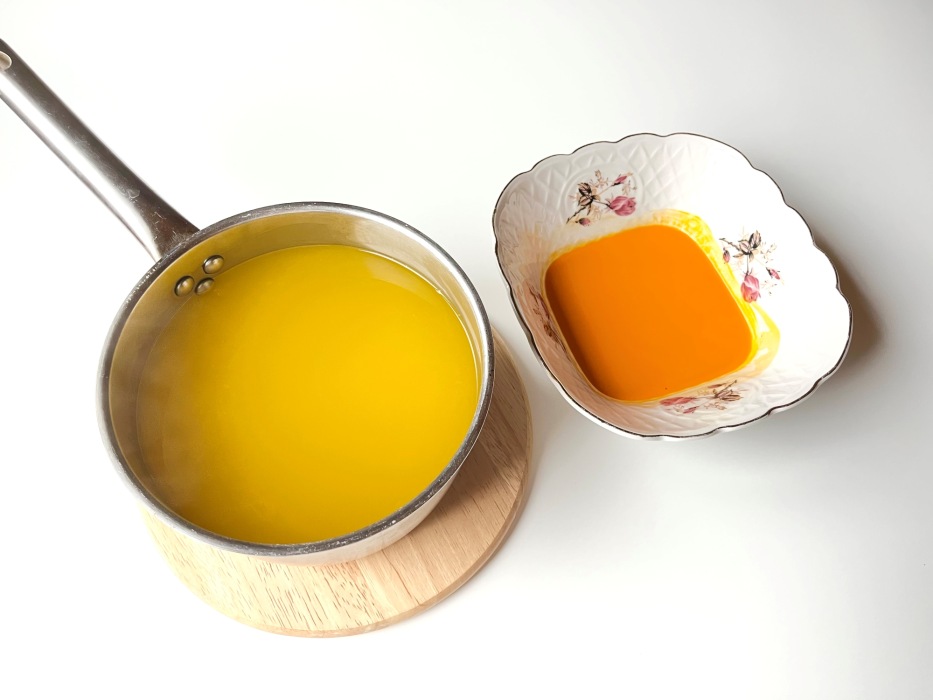 Итак, у нас должны получится две жидкости: холодный свежевыжатый сок, который мы процедили на шаге 2 и горячий отвар. Отвар должен остыть до температуры 40-50 градусов. Если он будет горячее, мы потеряем все витамины. Для ускорения процесса, можно поставить кастрюлю в холодную воду.