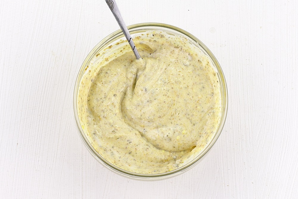 Тщательно перемешать специи с майонезом с помощью ложки или венчика до получения абсолютно однородной массы.