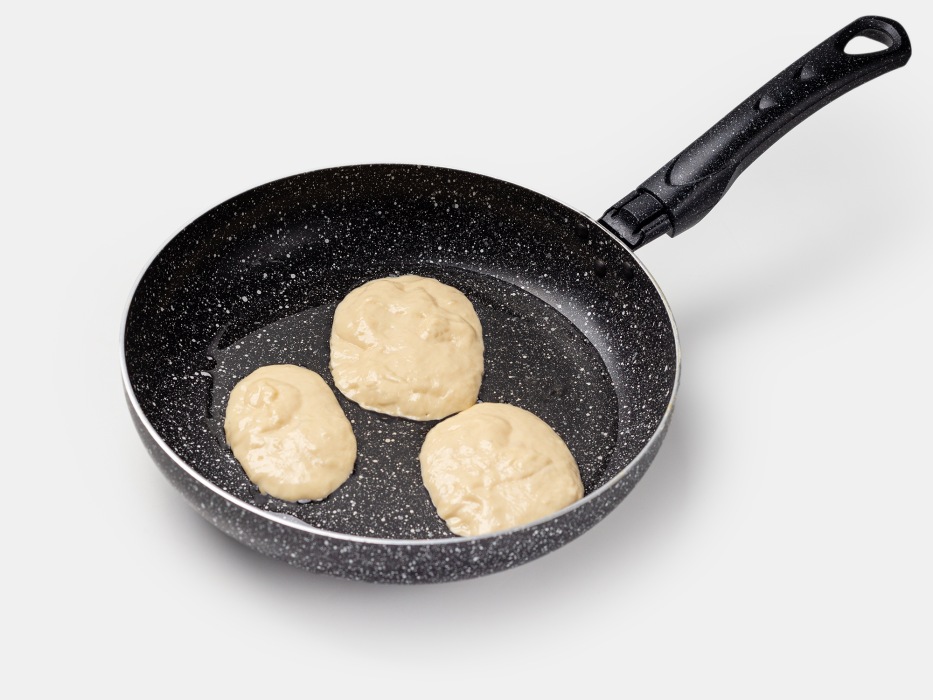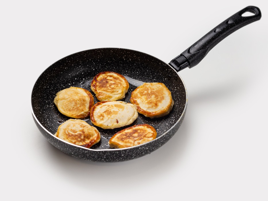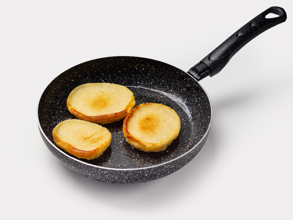 - Жарьте на среднем огне после хорошего прогрева сковороды – сильный огонь прижжет снаружи, а внутри оставит сырым, слабый не даст подняться.