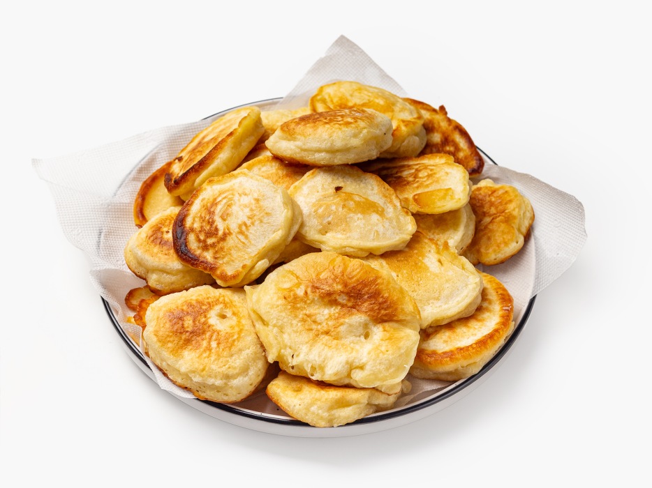 Выложить оладьи на блюдо, покрытое бумажными салфетками.