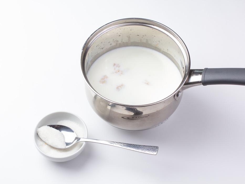 Подготовить все необходимые ингредиенты для приготовления овсяной каши на молоке.