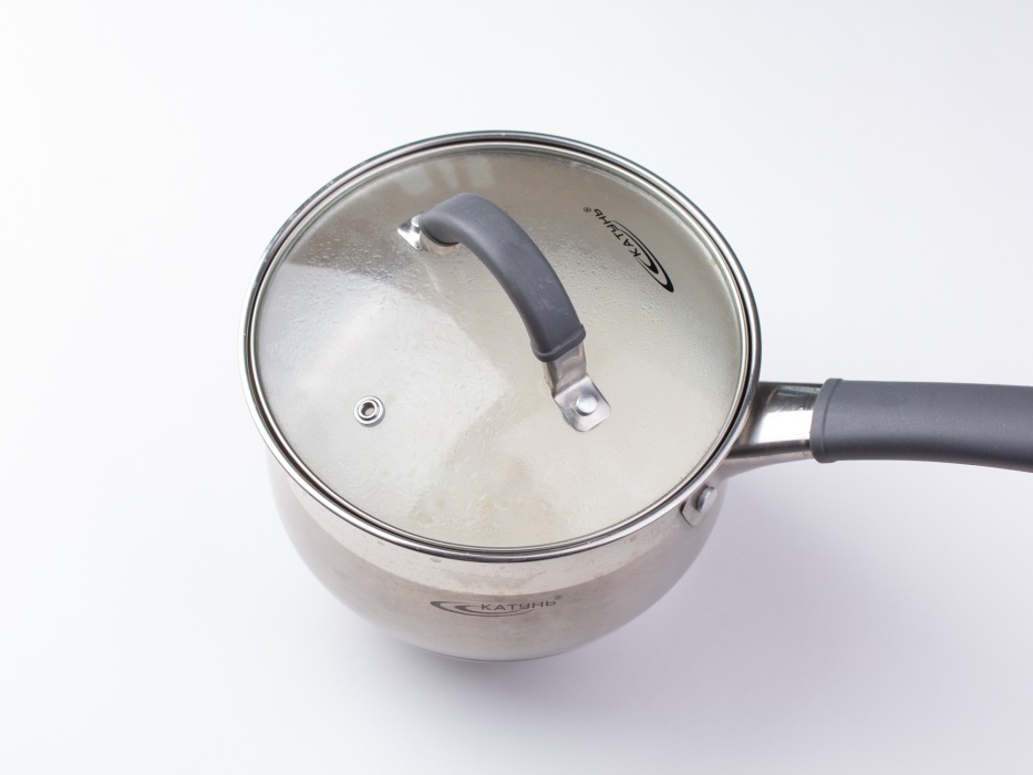 Как только овсянка на молоке начинает густеть, выключить огонь, закрыть крышкой и дать ей настояться 5 минут.