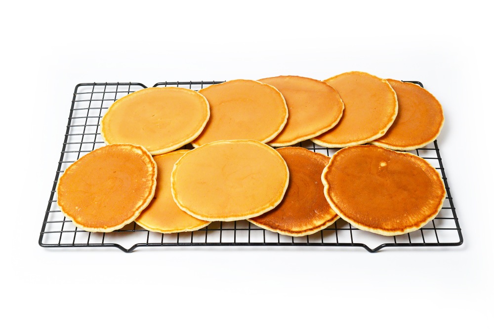 Получаются американские блинчики нейтральными по сладости, а потому идеально подходят для подачи с разными сиропами, вареньями или шоколадом. Жарятся они, как и положено, без масла, затем остужаются и замораживаются. Разморозить их можно за несколько часов в холодильнике перед подачей.