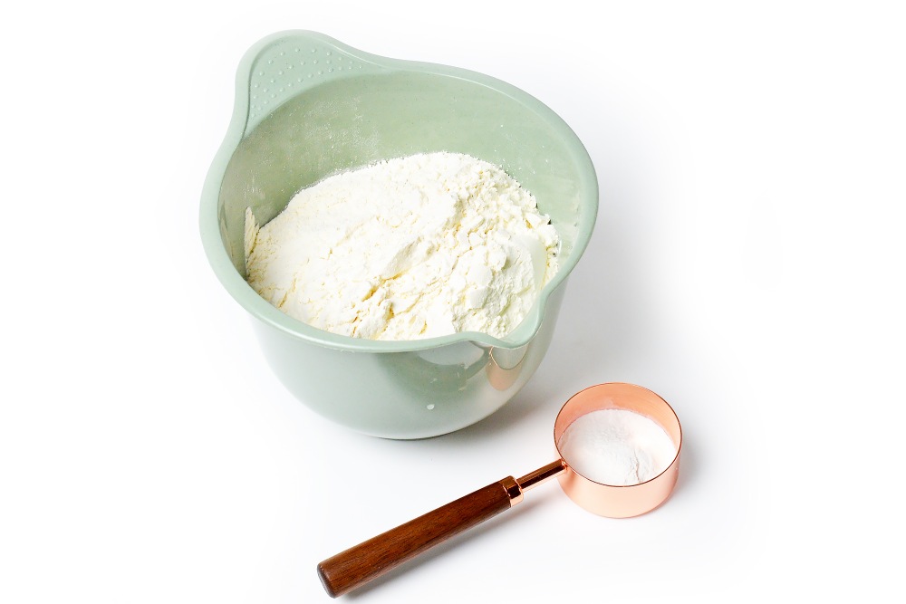 Муку смешать венчиком с разрыхлителем, чтобы равномерно распределился. Не забудьте муку предварительно просеять.