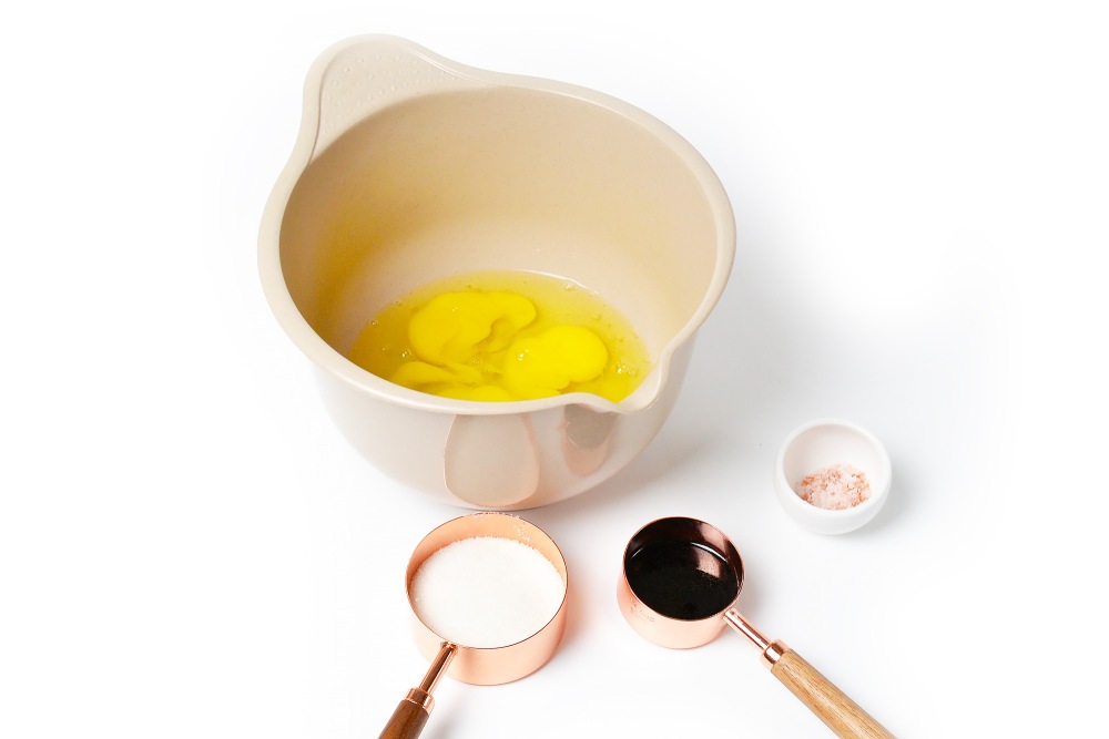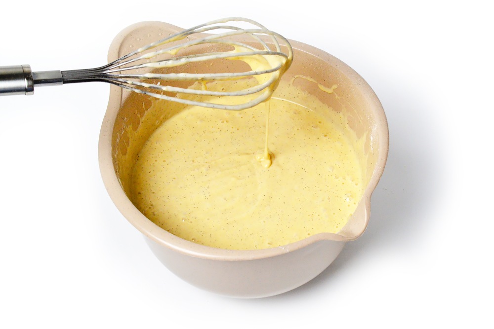 Яйца взбить венчиком с сахаром, солью и ванильной пастой – до объединения. Взбивать до посветления не нужно.