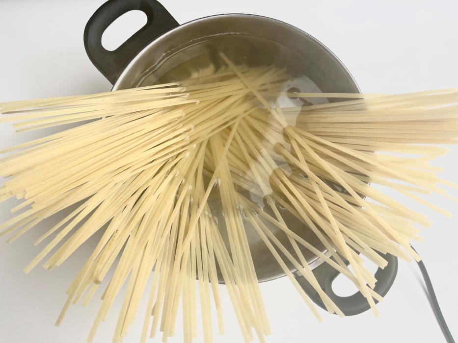 – Воду для макарон нужно солить, когда она начала кипеть, не раньше. Иначе макароны слипнутся.