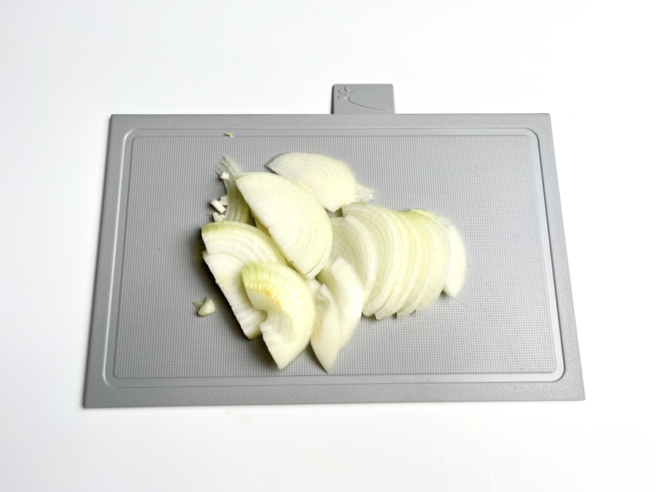 Лук очистить и нарезать полукольцами. Чтобы глаза не слезились, нож рекомендую периодически смачивать холодной водой